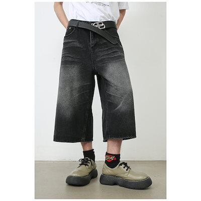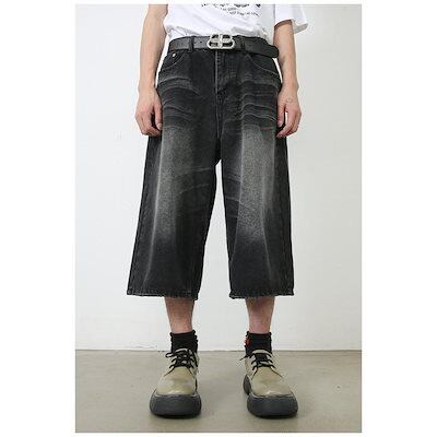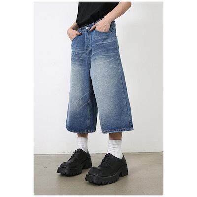 大きめ ワイドパンツ ゆったり 太め アンクルパンツ ブランド デニムパンツ ジーンズ レディース デニム gパン メンズ ボトムス ストレート 7分丈 ジーパン