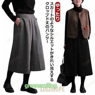 ウールタッチ レディース ワイドパンツ アンクルパンツ フレアパンツ 秋 ガウチョパンツ 冬 ボトムス ウェストゴム スカーチョ 無地 ポケット付き30%までに制限