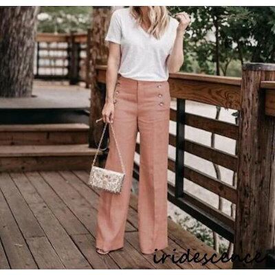 【迅速な出荷】ワイドパンツ レディース きれいめ 春 9分丈 アンクルパンツ ハイウエスト フロントボタン ガウチョパンツ カジュアル ボトムス2(個)ごとに11 O円き