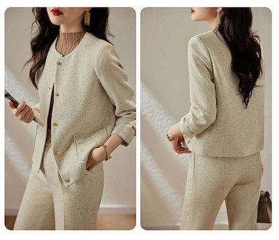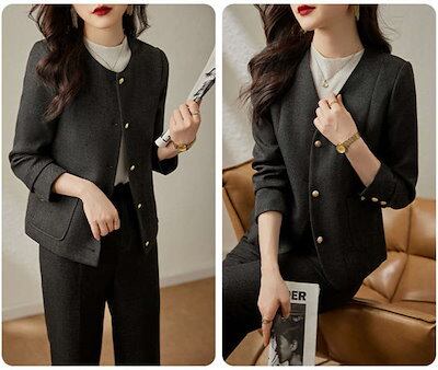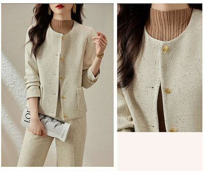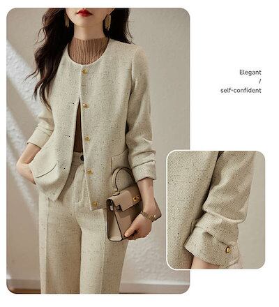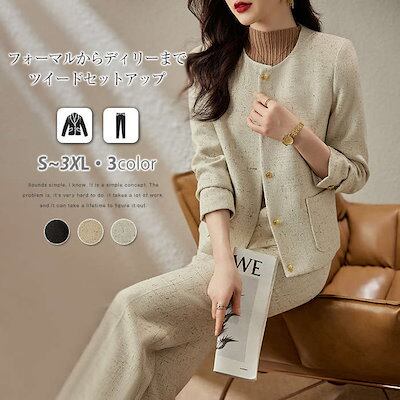 スーツ レディース セットアップ パンツスーツ ツイード風 レディース ジャケット リクルートスーツ ノーカラー 長袖 春 秋 フォーマルスーツ 体型カバー ブラックフォーマル ママスーツ フォーマル