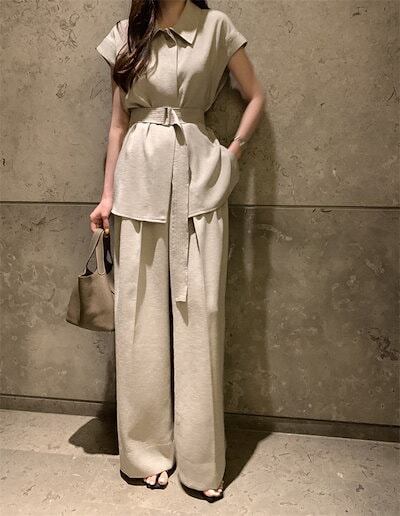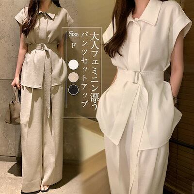 セットアップ レディース ワイドパンツ フレンチスリーブ ブラウス 春 夏 トップス パンツ ロング丈 ブラウス ロングパンツ フォーマル ハイウエスト ベルド付き 上品 2点セット 高級感 涼しい
