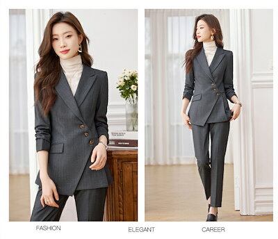 パンツスーツ セットアップ レディース 上下セット 春 秋 ストライプ柄 大きいサイズ 長袖 ロング丈 洗える フォーマル ビジネススーツ オールシーズン対応 通勤 OL おしゃれ 入学式 卒業式 エ