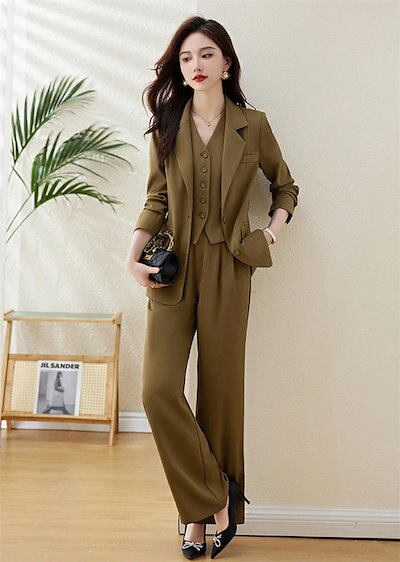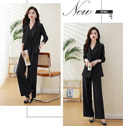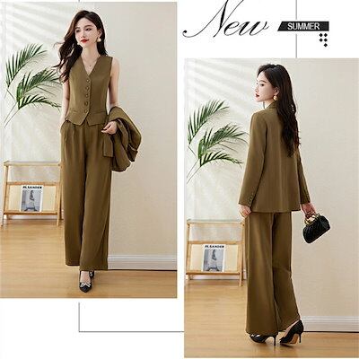 パンツスーツ セットアップ レディース 3点セット 春 秋 長袖 ジャケット ベスト パンツ 上下セット パンツドレス ボトムス ジレ パーティー きれいめ 細見え おしゃれ スーツセット 通勤 オフ