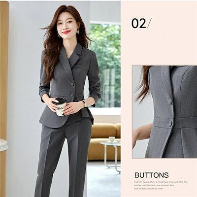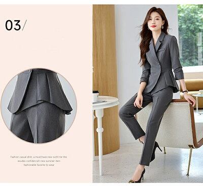 パンツスーツ スーツ レディース セットアップ フォーマル 春 秋 アシンメトリー 長袖 スッキリシルエット 洗える セットアップ ビジネススーツ リクルート オールシーズン対応 通勤 OL おしゃれ