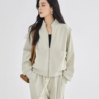 セットアップ パンツセット レディース 綿 トレーナー パーカー 長袖 無地 ロング パンツ ファスナー 上下セット ジップアップ スタジャン 2点セット 春 秋 スポーティ カジュアル 大きいサイズ