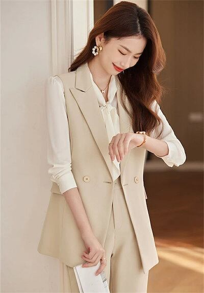 セットアップ ジレ ベスト レディース スーツセット パンツスーツ 2点セット レディーススーツ セレモニー ベージュ 黒 ロング コーデ 秋 冬 春 上品 きれいめ かわいい 卒業式 カジュアル 体