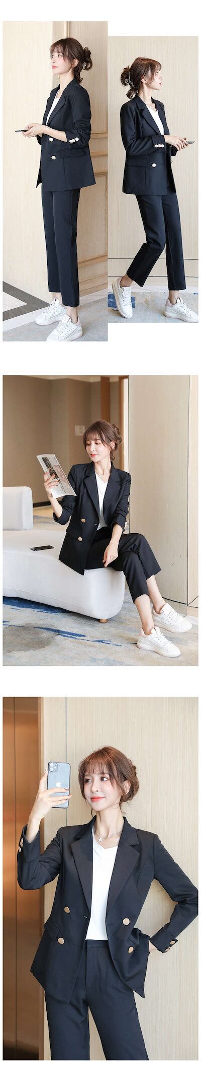 パンツスーツ スーツ レディース セットアップ フォーマル 春 秋 夏 ストレッチ 長袖 ロング丈 選べる 洗える セットアップ ビジネススーツ リクルート オールシーズン対応 通勤 OL 黒 おしゃ