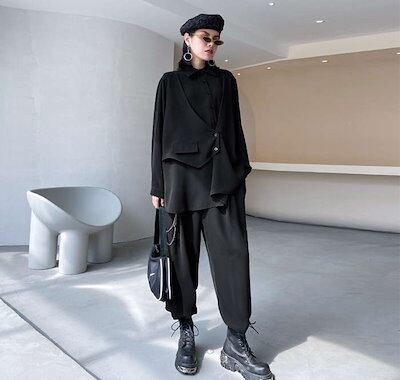 セットアップ レディース 秋 レディース きれいめ セットアップ 春 秋 フリーサイズ グリーン ブラック 個性デザイン ブラウス ワイドパンツ 2点セット ゆったり 上品 おしゃれ 大き