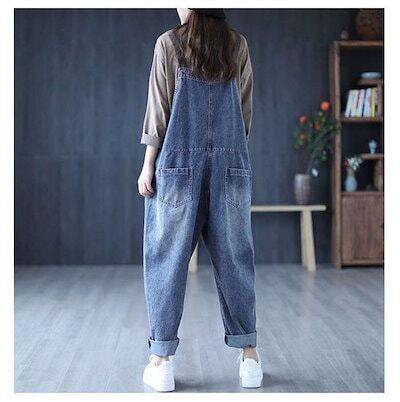 デニムオーバーオール レディース サロペット ロング丈 ジーンズ ゆったり 大きいサイズ おしゃれ デニムパンツ オールインワン ワイドパンツ 春 夏 秋 冬 着痩せ カジュアル おしゃれ 上品 体型