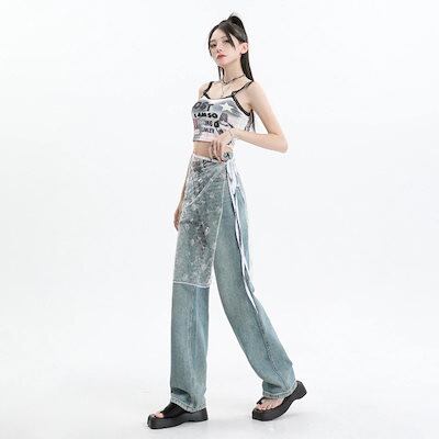 韓国 人気 スラックスパンツ2025春の新作デニムパンツ レディース ワイドレッグ 見えやせ ハイウエストゆったり 垂れ感 ファッション