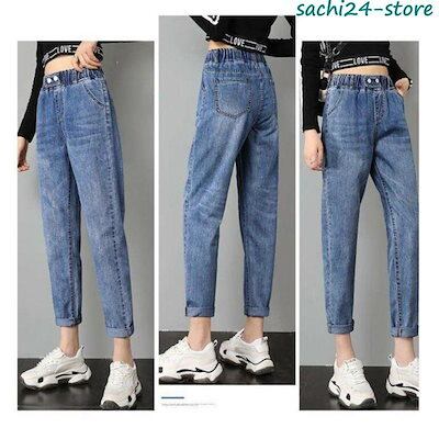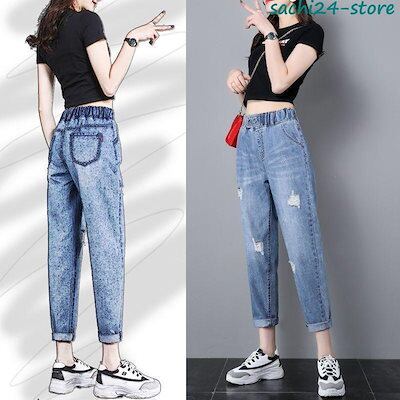 サルエルパンツ レディース ダメージ デニムパンツ サーカスパンツ ウエストゴム 九分 ガウチョ ワイドパンツ 体型カバー ゆったり カジュアル