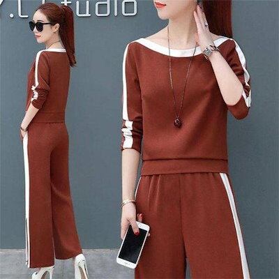 新品 大人気 セットアップ レディース ワイドパンツ ガウチョパンツ トップス 二点セット ボトムス スウェット 上下セット orange