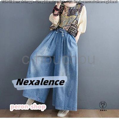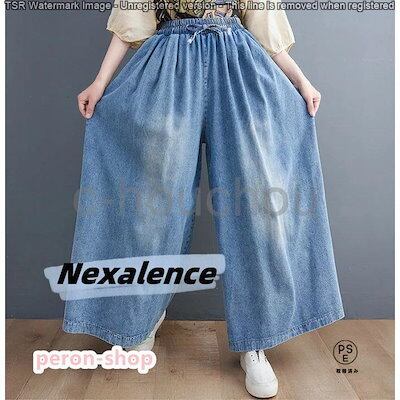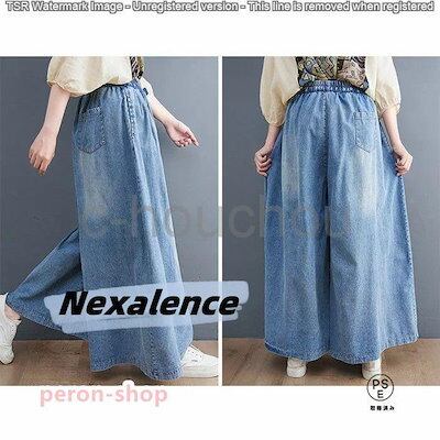 4月の新品ワイドパンツ デニムワイドパンツ ガウチョ デニムパンツ ゆったり スカーチョ パンツ 体型カバー 大きいサイズ レディース スカンツ ワイドルーズ 大人 ボトム