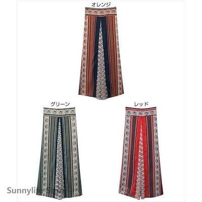 【新作セール】【即納 】ペイズリーMサイズガウチョパンツレディースウエストゴムハイウエストエスニック柄ワイドパンツ赤グリーンオレンジ