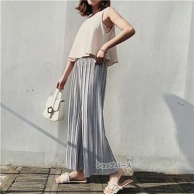 【新作セール】【即納 】ガウチョパンツレディース ワイドパンツ プリーツパンツ ウェストゴム ロング丈 春夏 無地 ゆったり かわいい きれいめ おしゃれ