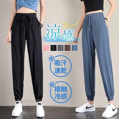 【新作セール】【即納 】ガウチョパンツ レディース 部屋着 ヨガ ひんやり ジャージ スウェットパンツ スポーツ 接触冷感 吸汗速乾 裾ゴム 春夏 ダンス