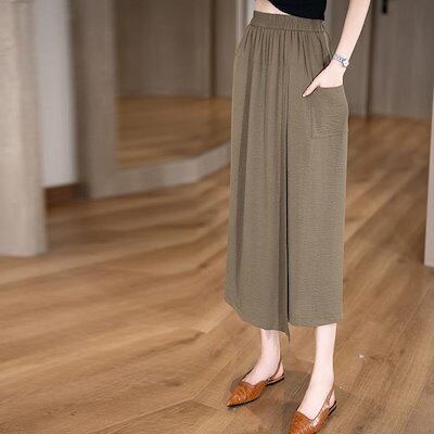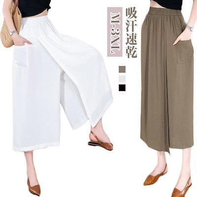 【新作セール】【即納 】8分丈 ガウチョパンツ レディース 冷感アイスシルクパンツ スカートパンツ キュロット 接触冷感 肌触り ひんやり 吸汗速乾 ハイウエスト 夏 大きい