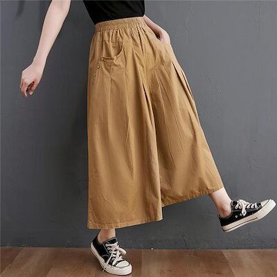 【GUANGYU】パンツ ワイドパンツ スカーチョ ガウチョ スカンツ レディース ハイウェスト ウェストゴム 美脚 ズボン 大きいサイズ スカート風
