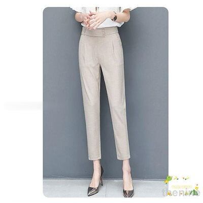 安価パンツ レディース スラックス タックテーパードパンツ 美脚 薄手 ハイウエス 細身 ストレートパンツ ウエストゴム 母の日 通勤 秋 春夏 九分丈