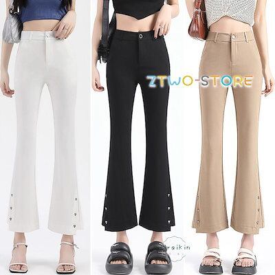 高評価商品,フレアパンツ スラックスパンツ レディース スリム パンツ ボトムス ズボン 九分丈 ハイウエスト 美脚 脚長 フォーマル ビジネス 春夏 白 黒 卒業式 入学式