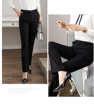 本日スラックス ビジネス フォーマル パンツ レディース スーツパンツ ストレートパンツ 美脚 オフィス パンツ ストレート ロング 黒 ブラック オフィス 卒入園式 新入社員 新生活