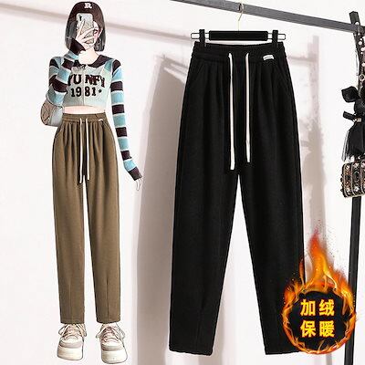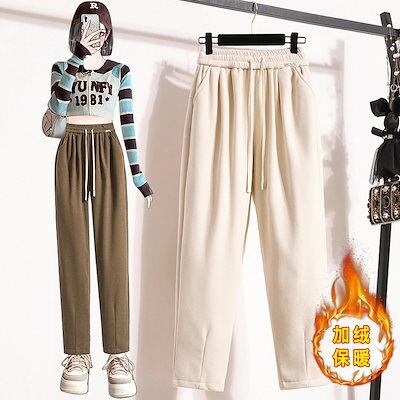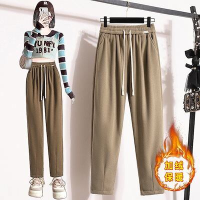 今年も人気秋冬新型厚手フリース裏起毛レディースハーレムパンツ 大きいサイズ 百掛けスラックスパンツ