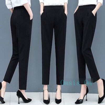 迅速な出荷!テーパードパンツ リネンパンツ レディース 夏服 ボ 9分丈パンツ スーツパンツ 綿麻風 バックゴム ポケット フォーマル40代 ビジネス30代50代コーデ