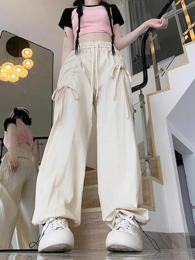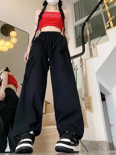2024春夏パンツ ロング丈 カーゴパンツ ワイド ストレート ハイウエスト 美脚効果 脚長効果 細見え 夏 白 黒 青 韓国ファッション レディース かわいい おしゃれ カジュアル お出かけ