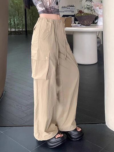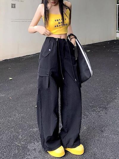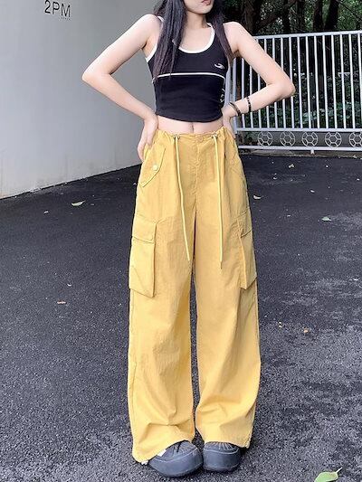 2024夏 韓国パンツ ロング丈 サイドポケット ワイド ストレート ハイウエスト 美脚効果 脚長効果 細見え 夏 白 黒 黄色 茶色 青 おしゃれ かわいい 韓国ファッション レディース お出かけ