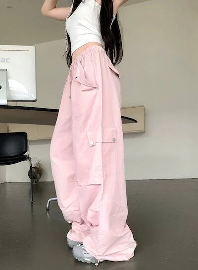 2024春夏パンツ カーゴパンツ ロング丈 ワイド ストレート ハイウエスト 美脚効果 脚長効果 細見え 夏 白 黒 おしゃれ かわいい 韓国ファッション レディース お出かけ