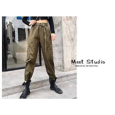 カーゴパンツ レディース ミリタリーパンツ ボトムス ウエストゴム 無地 カジュアル お中元