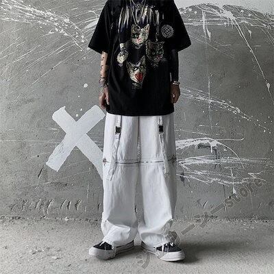 先取りロングパンツ ガウチョパンツ スウエットパンツ ホワイト ブラック ストレート メンズ レディース