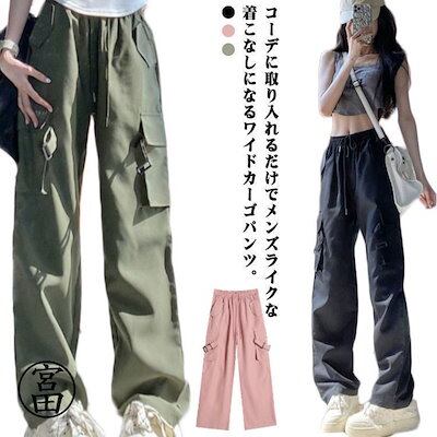 カーゴパンツ ボトムス チノパンツ ルーズ レディース ロング丈 ゆったり パンツ ワイドパンツ ワークパンツ 韓国 楽 動きやすい カジュ