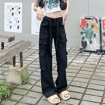 カーゴパンツ 着痩せ ストレート ジョガーパンツ デニムパンツ レトロ ゆったり 長ズボン 美脚 パンツ レディース服 韓国ファッション