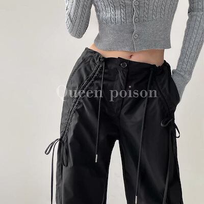 カーゴパンツワークパンツ レディース 夏 蝶ネクタイ ドローストリング カジュアルワイドパンツ