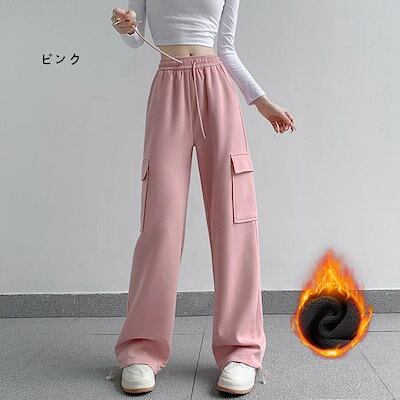 スウェット レディース カーゴパンツ 裏起毛 暖かい ボトムス 2way リラックス ゆったり 柔らか ウエストゴム ドローコード付き ポケット