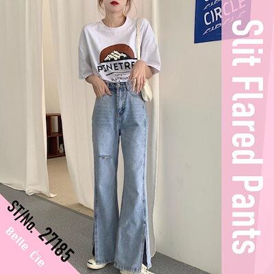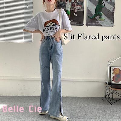 フレアパンツ スリット デニムパンツ ジーンズ レディース Gパン ズボン ベルボトム ロングパンツ