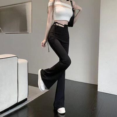 パンツ ロングパンツ ワイド フレア ベルパンツ レディース シンプル ブラック 黒 ジム ジャージ おしゃれ ハイウエスト セクシー かっこいい