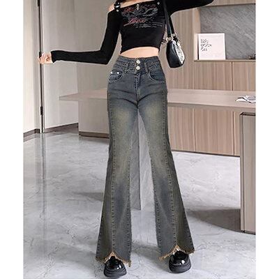 新追加 2025 新作春 脚長効果! デニムパンツ レディース フレアデニムパンツ ハイウエストジーンズ