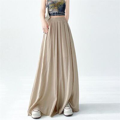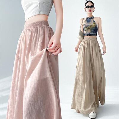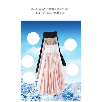 ガウチョパンツ パンツ レディース フレアスカート 透け感 冷感パンツ レディース イージーパンツ 春夏 ひんやり 接触冷感 ウェストゴム