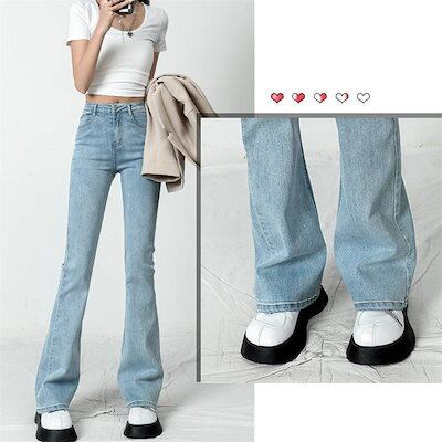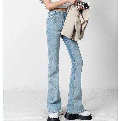 『2個ご購入で300円OFF』デニムパンツ レディース ジーンズ フレアパンツ ボトムス ハイウエスト ロング丈 カシュアル 体型カバー ゆったり 美脚 春秋 細身