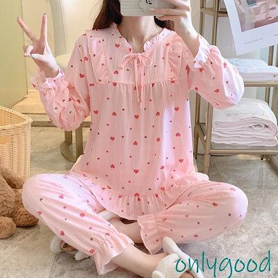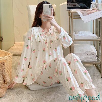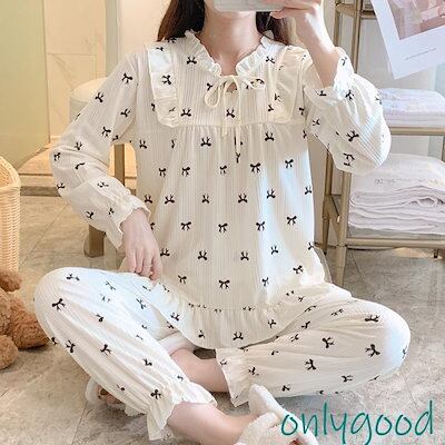 パジャマ レディース 春 秋 冬 長袖ルームウェア 可愛い花柄パジャマ レースフレア ロングパンツ上下セットルームウェア 女性 部屋着 お姫様 韓国風 ゆったり