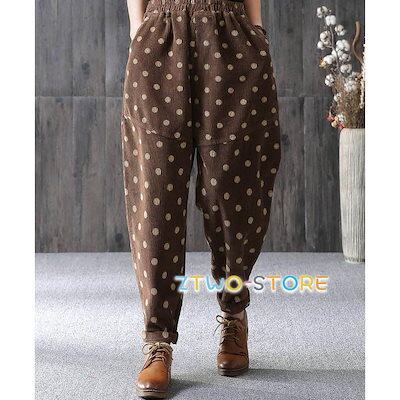 サルエルパンツ ドット柄 ゆったり 体型カバー ウエストゴム レディース ボトムス