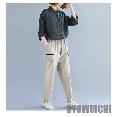 サルエルパンツ テーパードパンツ パンツ 綿麻パンツ ボトムス レディース カジュアル ポケット付き ゆったり コットン リネン 綿麻 大きいサイズ コーデ 春