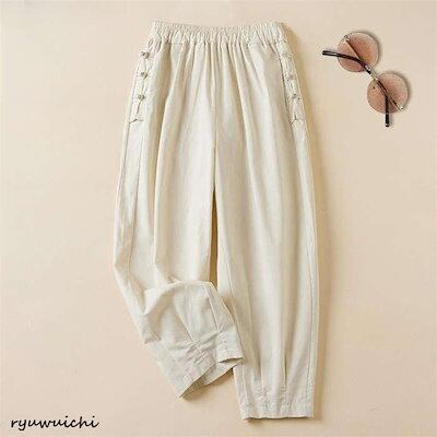 サルエルパンツ リネンパンツ レディース バルーンパンツ 9分丈 夏 春 パンツ ゆったり ポケット付き ワイドパンツ 綿麻 リネン 美脚 コットン ボトムス ズボン