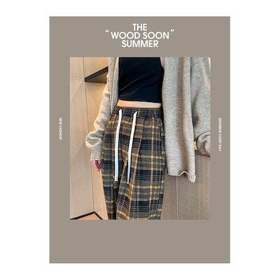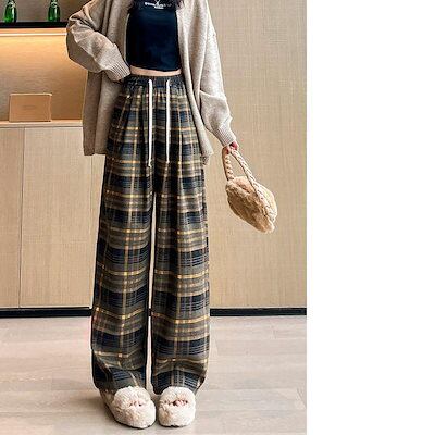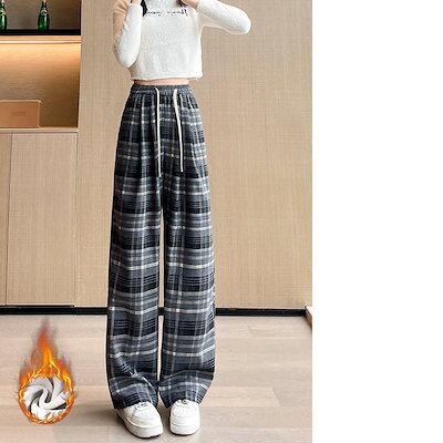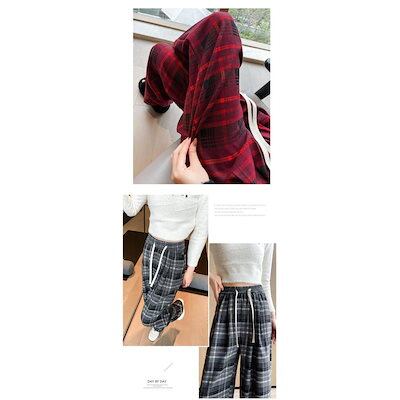 パンツ サルエルパンツ テーパードパンツ ボトムス レディース パンツ ズボン チェック柄 チェック ロング丈 綿混 ハイウエスト ウエスト紐付き 春 秋 冬 裏起毛