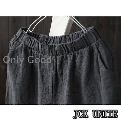 レディースサルエルパンツリネン薄手夏アンクルパンツゴムハイウエストポケット付き9分丈細身スリム無地シンプルカジュアル
