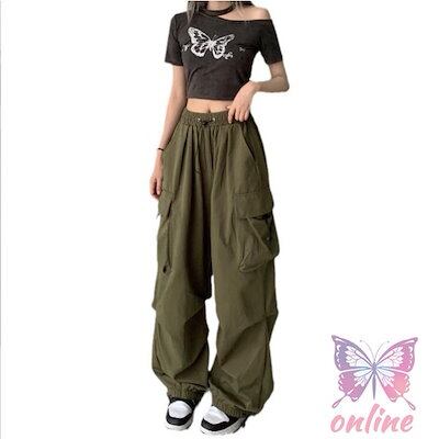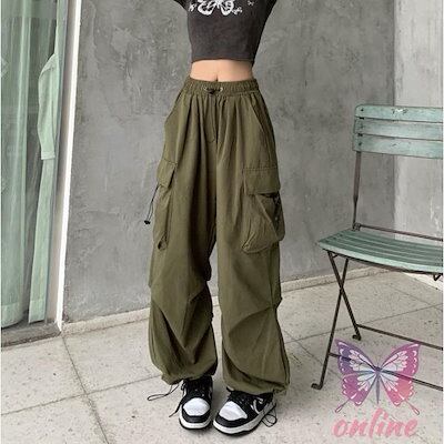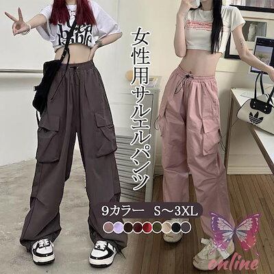 カーゴパンツ ゆったり 女性 サルエルパンツ 九分丈 ズボン ウエストゴム レディース ロングパンツ ミリタリー風 お洒落 レトロ