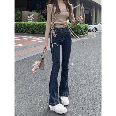 デニムパンツ レディース フレアパンツ デニム ロングパンツ ハイウエスト 美脚 脚長 韓国 スリム デイリーコーデ カジュアル ジーンズ おしゃれ