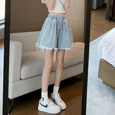 2024春夏新作 ボトムス パンツ ショート丈 夏 レディース 韓国 デニム ハイウエスト 足長効果 Aライン スリム ジッパー おしゃれ お出かけ 休日